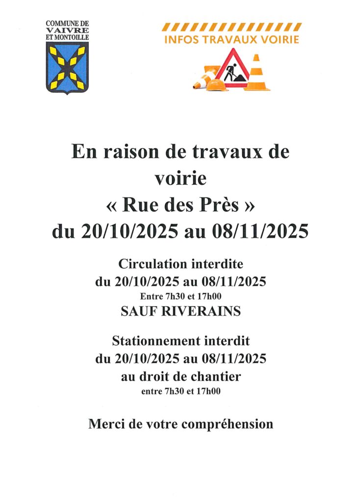 Travaux Voirie rue des Près