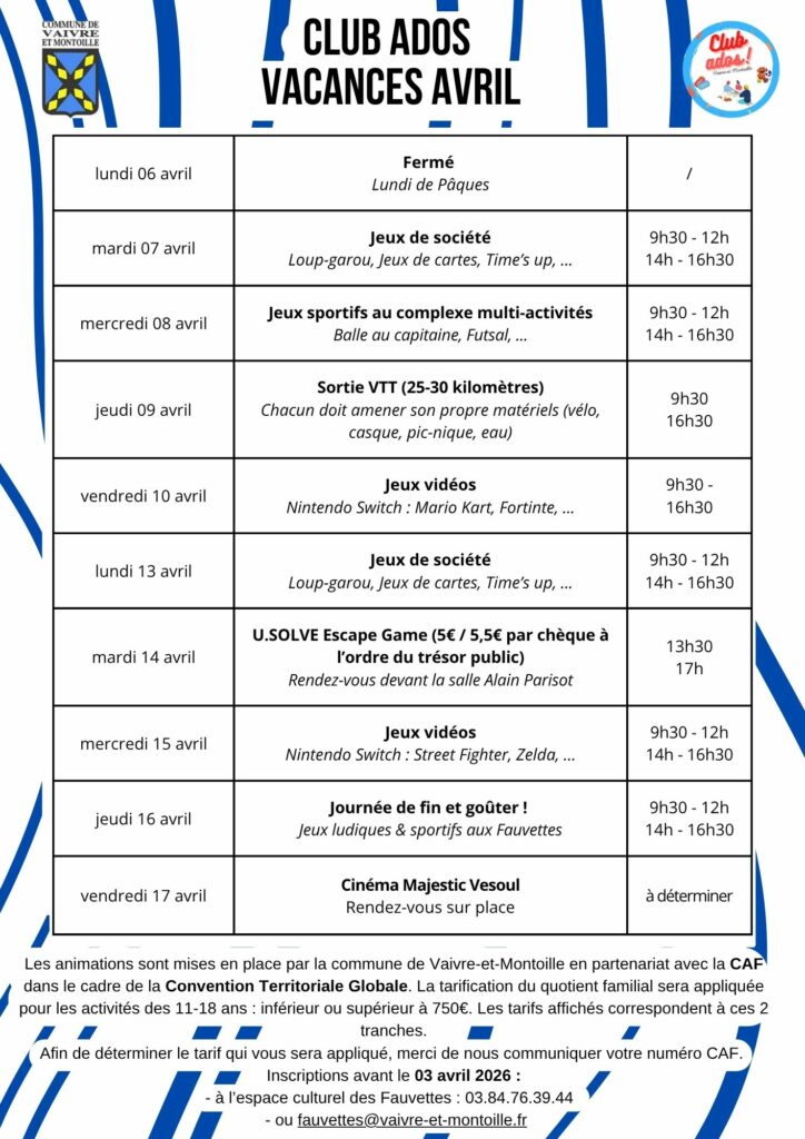 Club Ados – Vacances Avril 2026