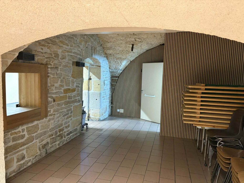 Située au rez-de-chaussée de la mairie, cette salle est spécifiquement dédiée aux échanges et à la vie locale.